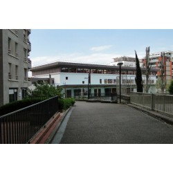 Coté est, ce sont deux gros immeubles, le premier palissé de bois, le second à armatures métalliques. Ils pâtissent des cris des joueurs mais bénéficient de la vue sur la Saône et la colline de la Mulatière.