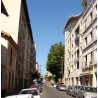 La séparation avec la route de Genas se fait par un square très allongé en deux parties et un immeuble dont le toit en vague vient s’appuyer sur un second qui va jusqu’à la rue Louis.