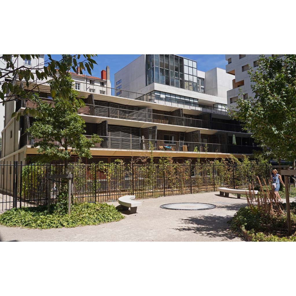 Elle s'élargit en un petit jardin entre deux grilles avec un petit immeuble de deux étages de terrasses et un jardin privé au sud qui laisse voir les dos de la place Mitterrand.