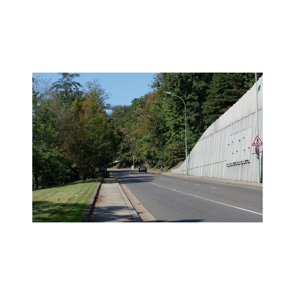 Ensuite, la voie serpente entre de gros murs de soutènement, d'abord en pierres et plus haut en béton. L'intérieur de chaque lacet est couvert de végétation rase dans un petit bois dans lequel des escaliers et de vagues sentiers sont aménagés. Ils font une balade agréable nonobstant les boites de soda et le vrombissement des moteurs.