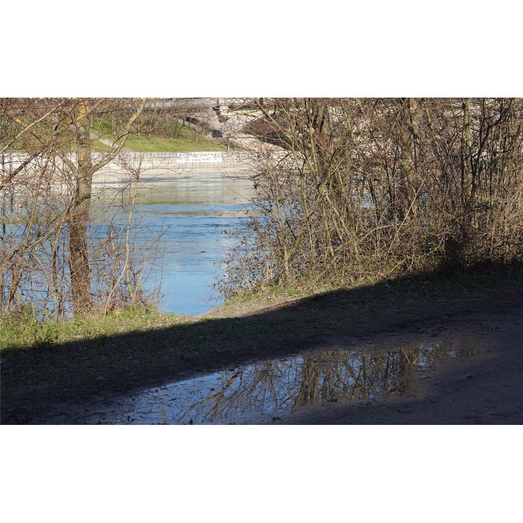 Sur une courte première partie le sol est stabilisé jusqu'à une rampe de mise à l'eau des bateaux dont le mur tombe dans le Rhône.