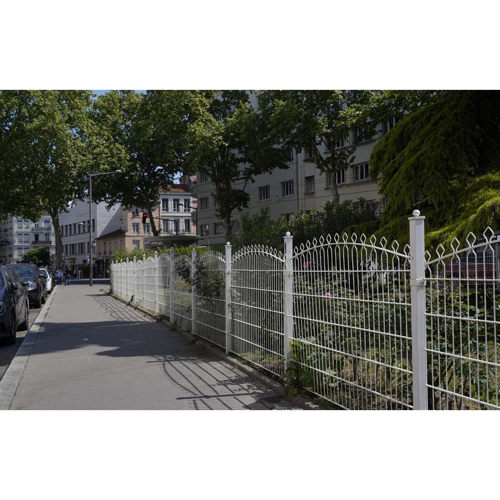 C'est un triangle entouré d'une grille blanche, spontanément j'aurais dit un jardin d'ornement, mais non la langue évolue, il s'agit d'un refuge de biodiversité utilisé par les pigeons.