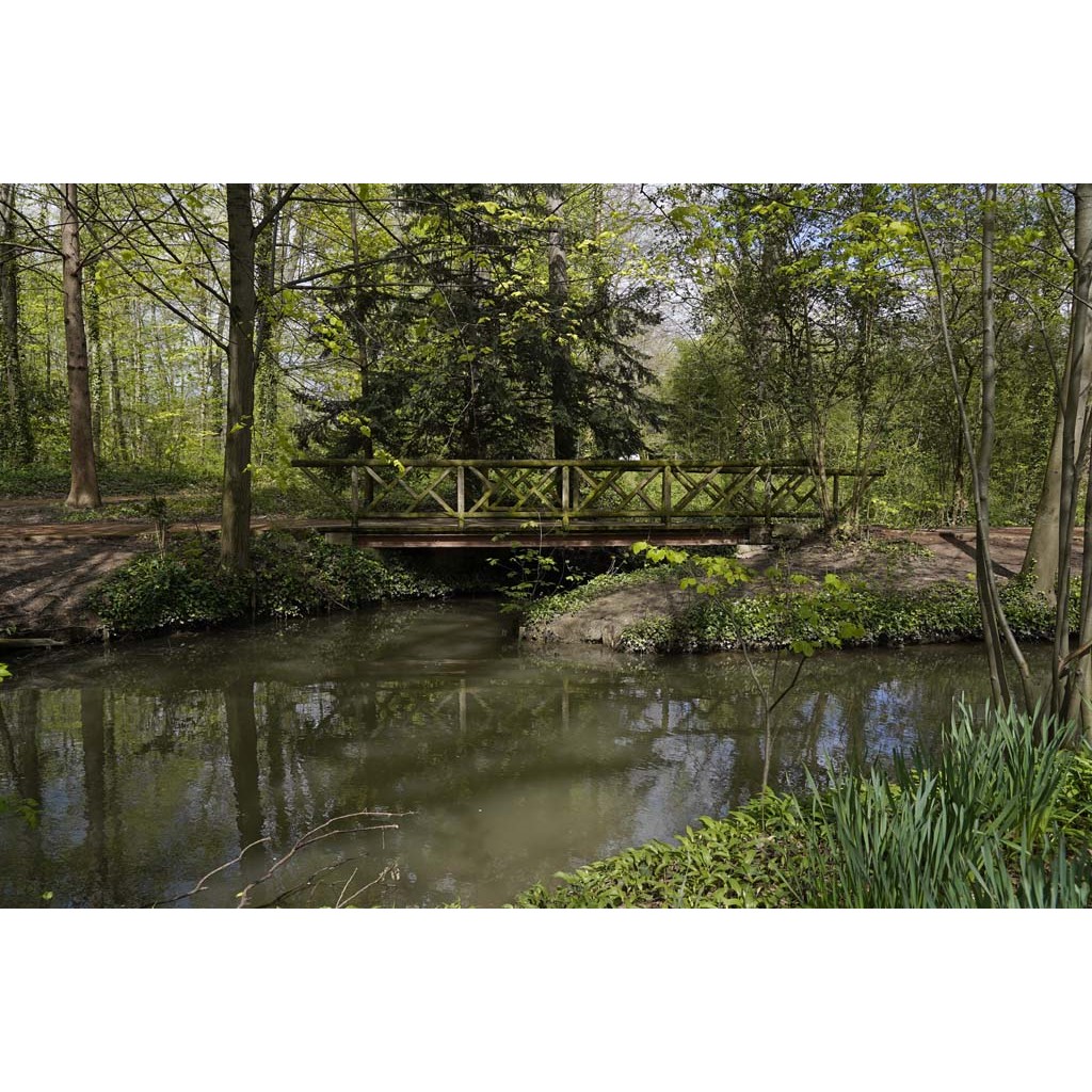 Une dizaine de petits ponts traversent le petit canal qui coule dans le bois au sud du lac.