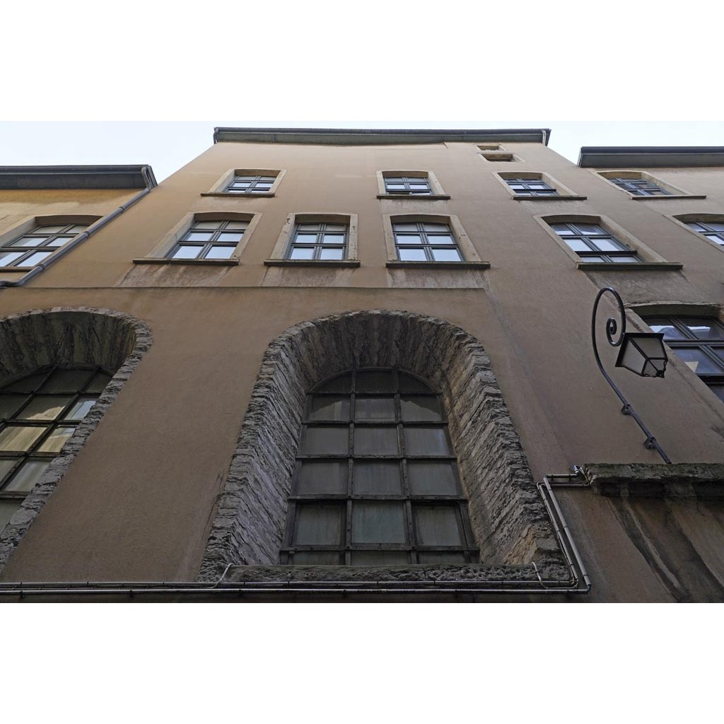 Coté Bourse, on entre sous l’escalier qui relie la chapelle des jésuites aux locaux de l’école.