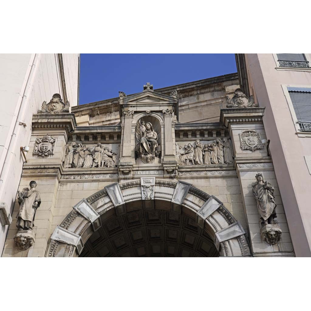 Le 6 septembre 1759, le dauphin Louis est venu poser la première pierre de l'église Saint Vincent. Le clocher porte la date 1761. Elle s'est appelée Saint Louis durant un siècle avant de devoir être distinguée de Saint Louis de la Guillotière. Elle devait remplacer la chapelle et l’église des Augustins. Elle a été agrandie vers le quai et a pris sa dernière apparence après un incendie en 1987. Le père Genin y est resté soixante ans, vicaire puis curé de 1871 à 1932.