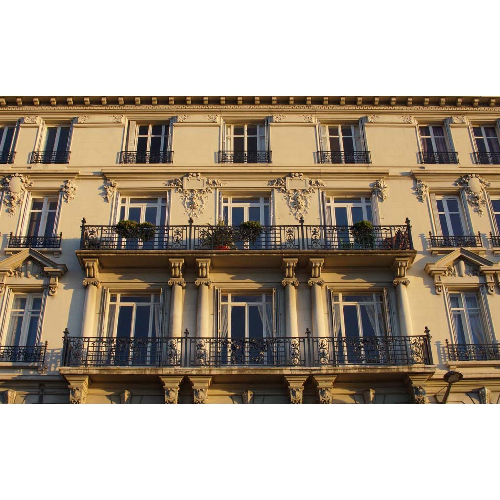 Après la rue Jaboulay, c'est à nouveau un alignement de deux blocs d'immeubles d'habitation qui se prolonge par l'avenue Leclerc ouverts par de grandes portes et encadrements de fenêtres avec de beaux pilastres au 28. Le 29 est différent, avec une partie en avancée tenant sur les terribles têtes de lion du rez de chaussée.