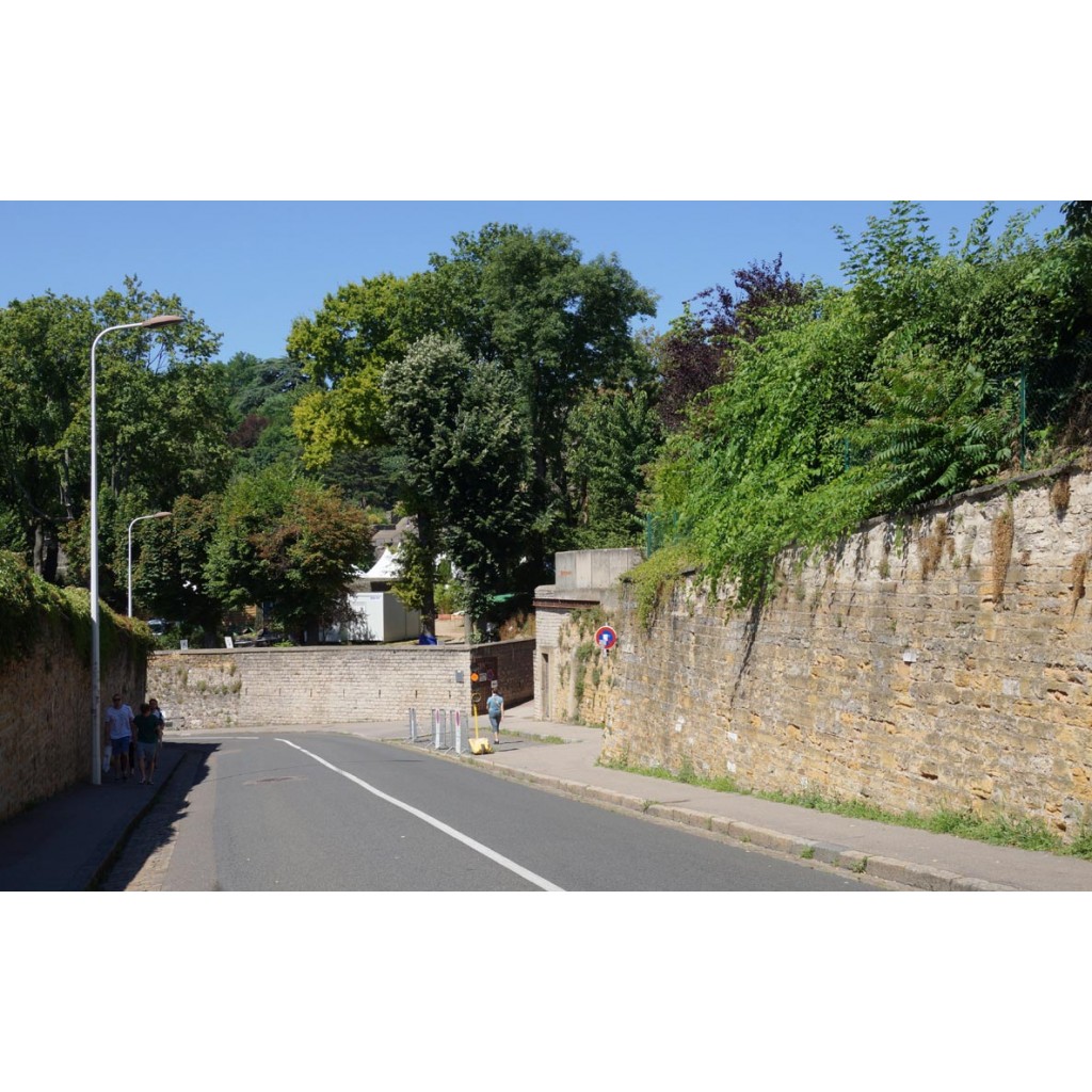 Le mur continue ensuite jusqu'aux grilles des théâtres, il soutient le sol et les arbres du jardin Romain, trois mètres au-dessus, auquel une allée donne accès.