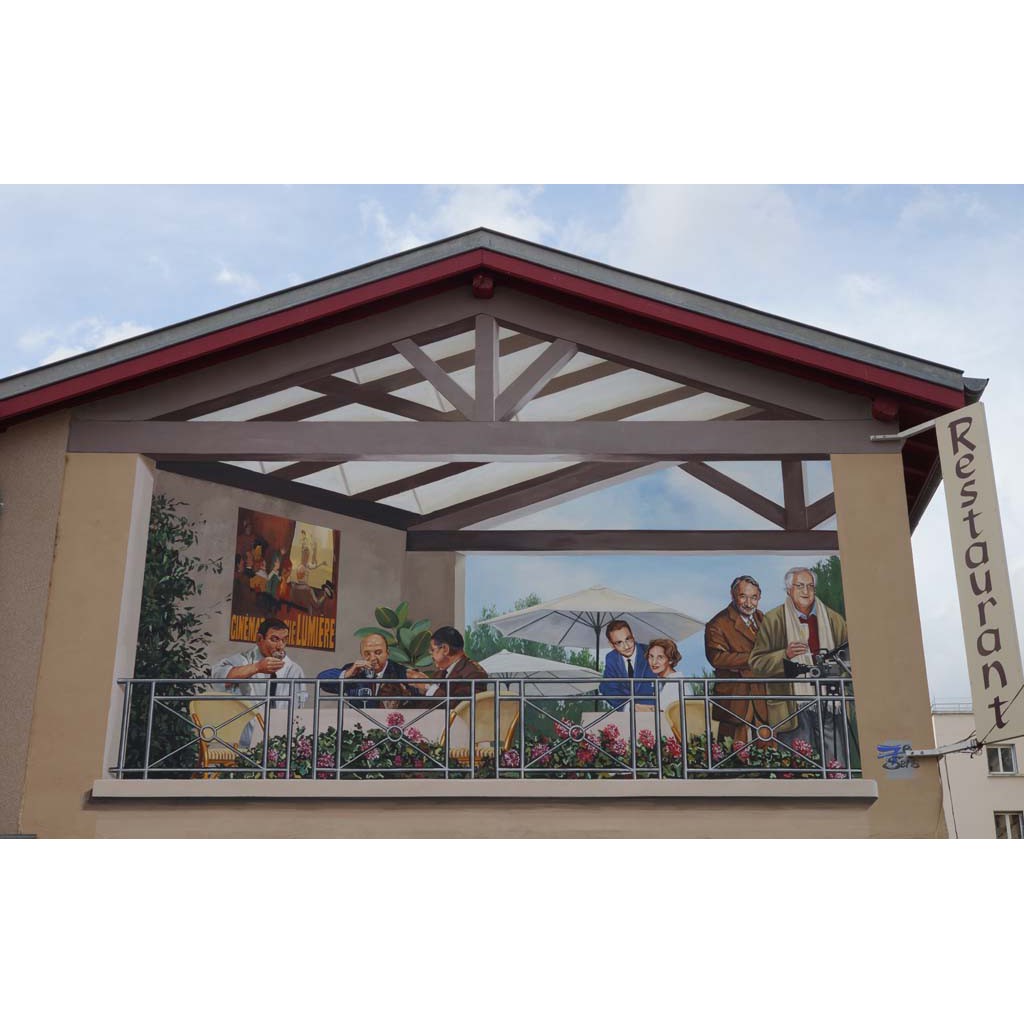 Elle traverse une première zone étroite resserrée par le mur d’un jardin. Après la rue du Premier Film, elle traverse le quartier de Monplaisir entre deux alignements de petits immeubles de l’époque de 1900, simples et jolis et quelques reconstructions plus récentes. Une grosse villa au 22 et une petite maison font le croisement avec l’avenue des Frères Lumière. En 2022 j'ai noté une fresque de cinéma, une vierge et une fresque hôtelière dans le recoin, celle du cinéma a changé depuis 2008, l'autre était en place depuis 1990 et la vierge recalée avec l'extension du restaurant.