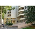 Les deux grandes barres de l’assurance maladie, unies par leur pavillon central en avancée viennent coté sud entre les rues Flandin et Gandolière. En face, les constructions laissent la place à un petit square.