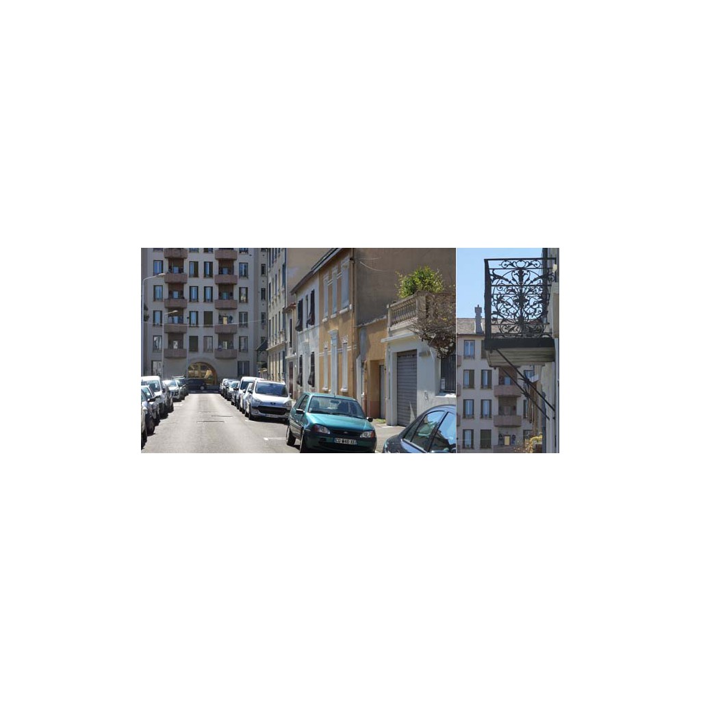 Elle commence par une belle maison blanche au 1 avec son jardin, puis un atelier, ensuite la rue passe entre deux alignements de petites maisons.