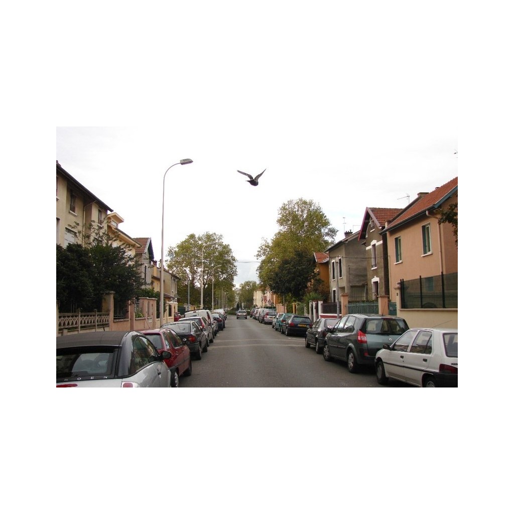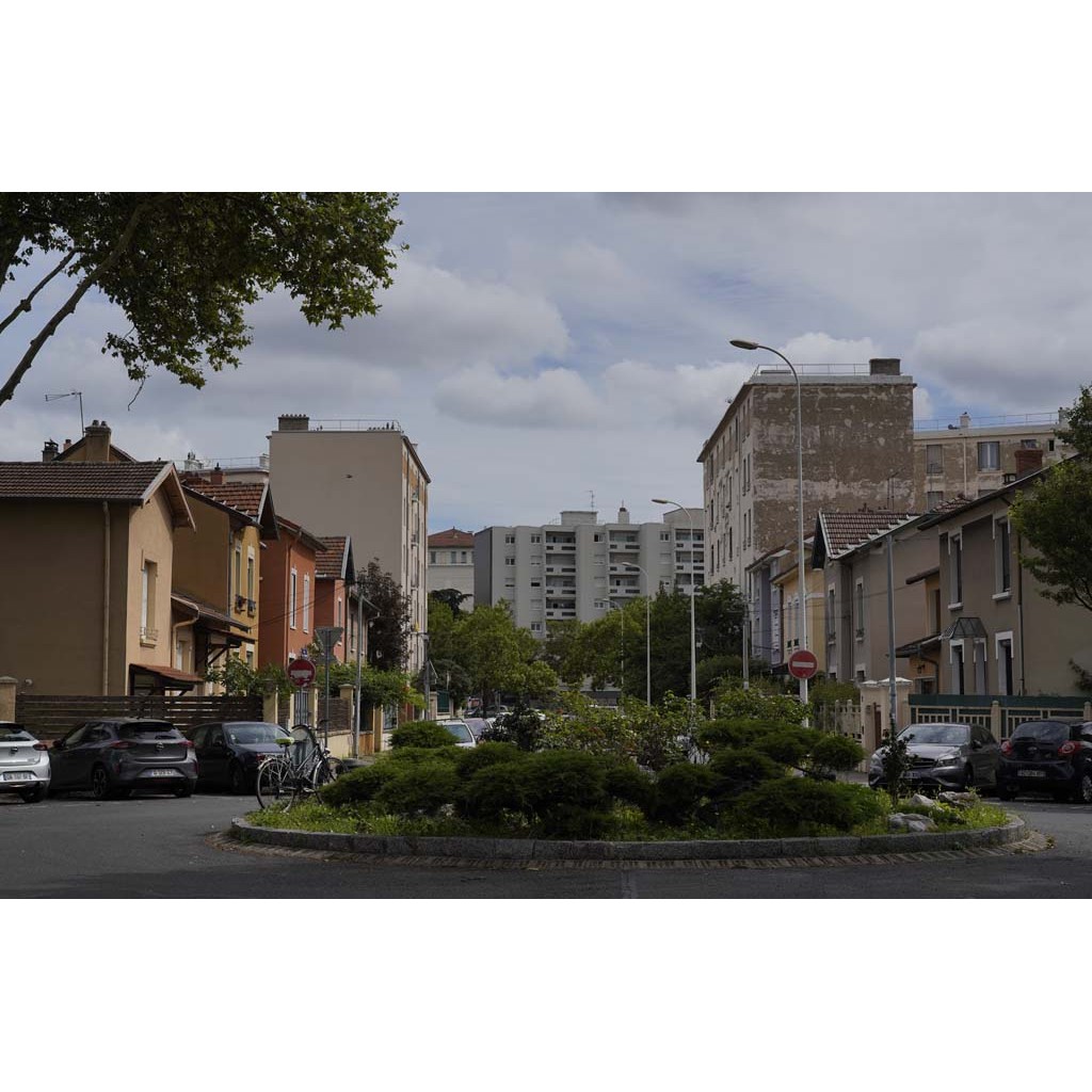 Elle ouvre entre deux petits immeubles HLM de l’avenue Paul Santy, datés de 1931 et 1939 puis elle passe entre deux alignements de maisons semblables, un étage, à peine séparées les unes des autres dans de petits jardinets.