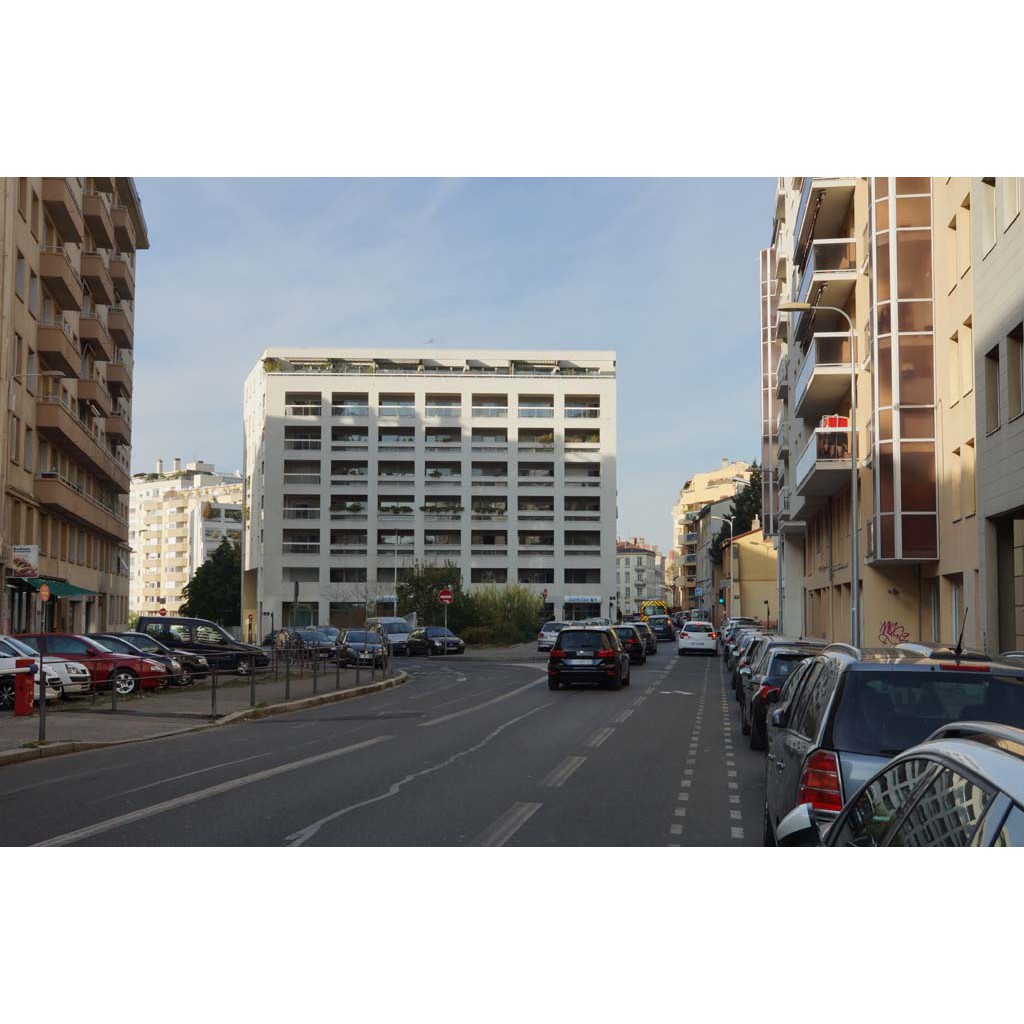 Elle absorbe la rue Marc Bloch face au bâtiment du CROUS, en retrait dans un petit cube de deux étages avec une allée qui donne accès à la résidence universitaire. Il est collé à un bâtiment plus haut qui forme un immense arrondi qui se poursuit jusqu'à la rue Garibaldi et permet de retrouver le prolongement historique de la route de Vienne.