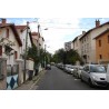 Elle passe entre des maisons individuelles, coté est, elles sont en retrait dans leurs jardins, un peu cachées par la végétation.