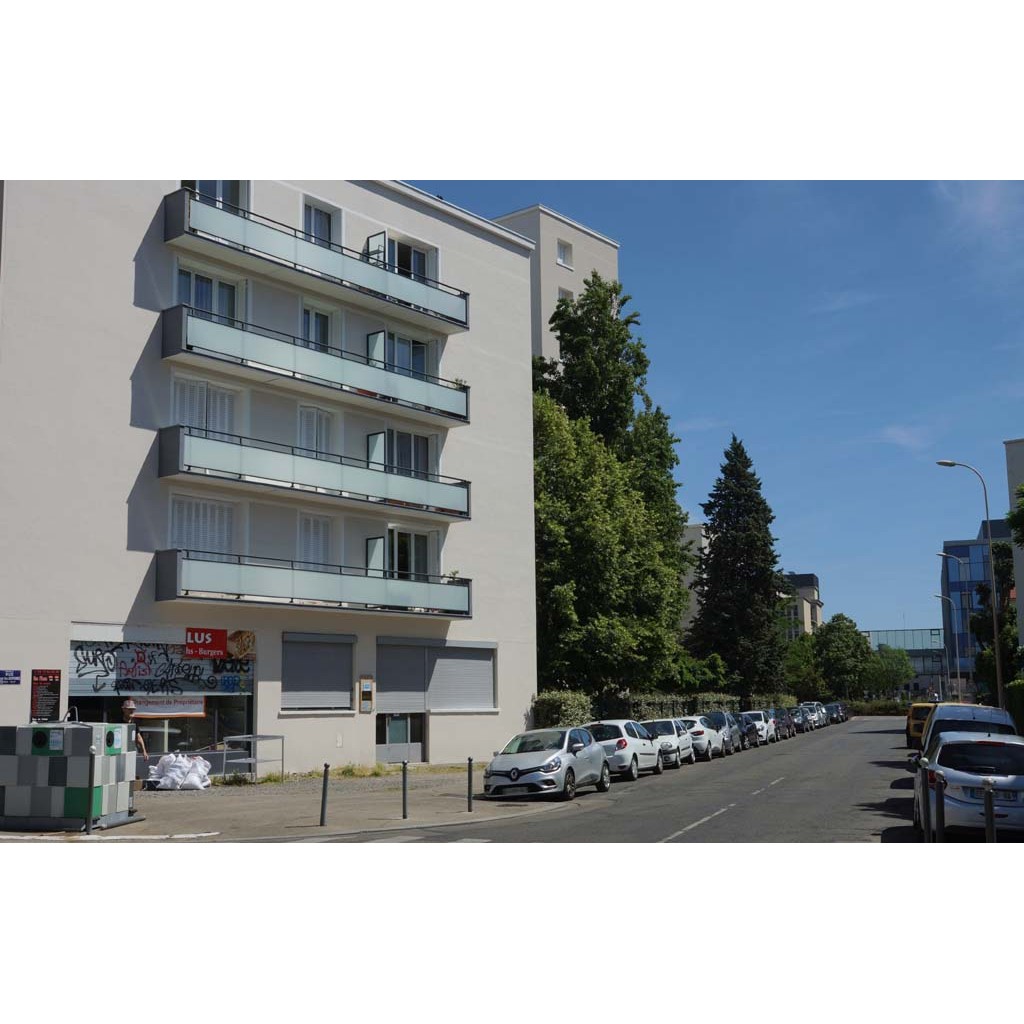 Coté est, le 10 montre son flanc et une barre en travers, des parkings le séparent des deux immeubles des extrémités qui sont orientés sur les rues principales.