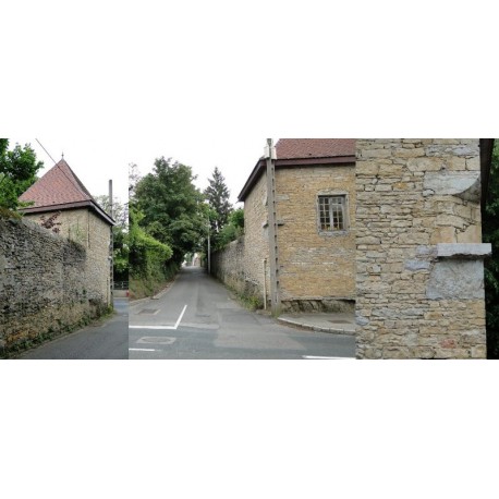 C'est une rue bossue qui passe entre deux murs de pierres remarquables par de nombreux portails, certains assez beaux.