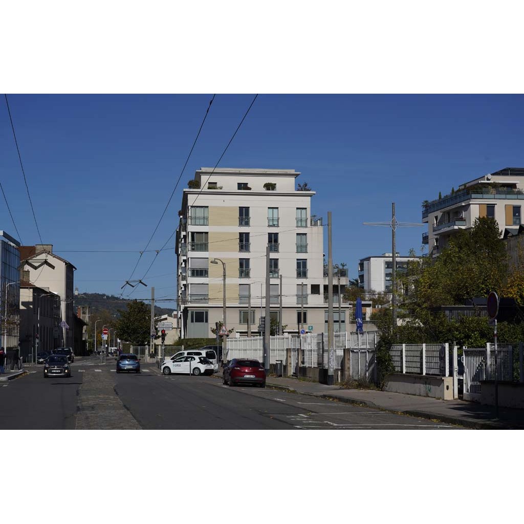 En cheminant vers le sud, on voit Fourvière, vers le nord, les monts d’Or, si on tourne la tête à l’ouest, c’est la tour de la Duchère qui attire l’attention.