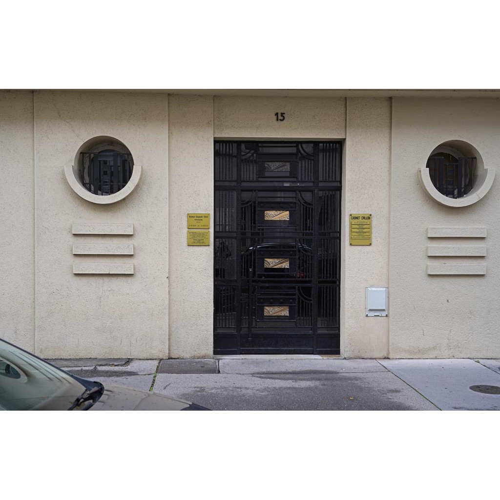 Du 18 à la rue Boileau, c'est une longue barre aux fenêtres basses et carrées, cinq étages avec des ouvertures bordées de marbre et des décorations métalliques. En face, coté nord, une résidence est construite autour d'un beau jardin.