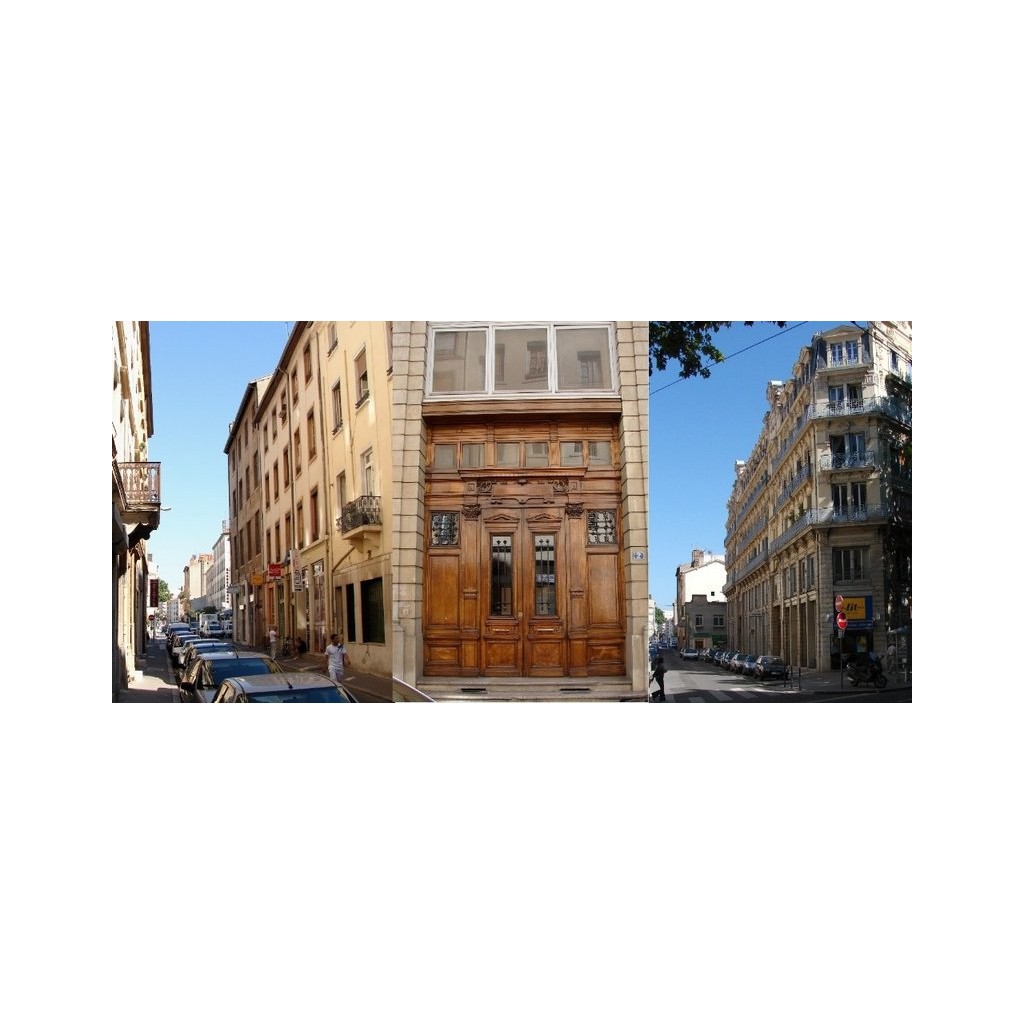 Le 2 et 4 est un superbe immeuble du cours de la Liberté, signé Tony Blein 1896, très décoré avec deux entrées jumelles magnifiques, en bois. En face, c'est un alignement de façades simples avec de belles ferronneries au 5. Le 4 traboule vers le 65 cours de la Liberté à travers une belle cour à la forme originale.
