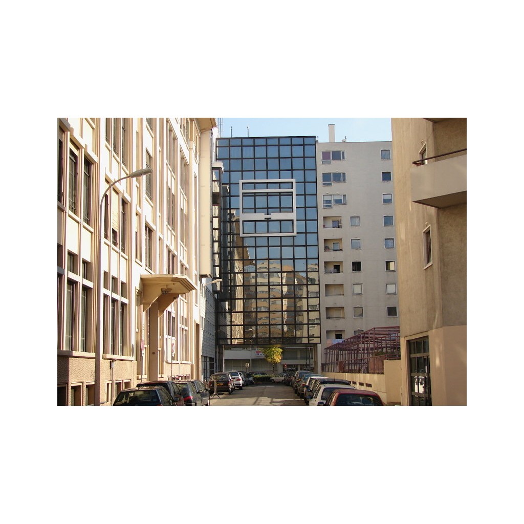 Coté sud, c'est d'abord un bel immeuble neuf de six étages qui finit en arrondis, deux colonnes de vitres le divisent.