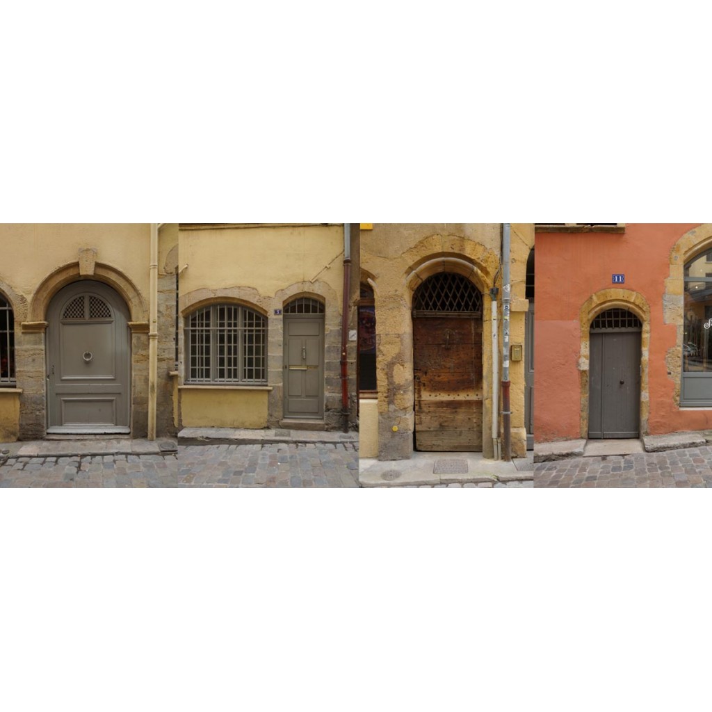 Assez hautes coté nord, la majorité probablement contemporaines du dernier aménagement du quartier au 19e siècle, les entrées sont assez jolies, le 4 avec sa main, le 8 avec un anneau en heurtoir et une petite vierge au-dessus de la porte et une grande porte rouge un peu plus haut.