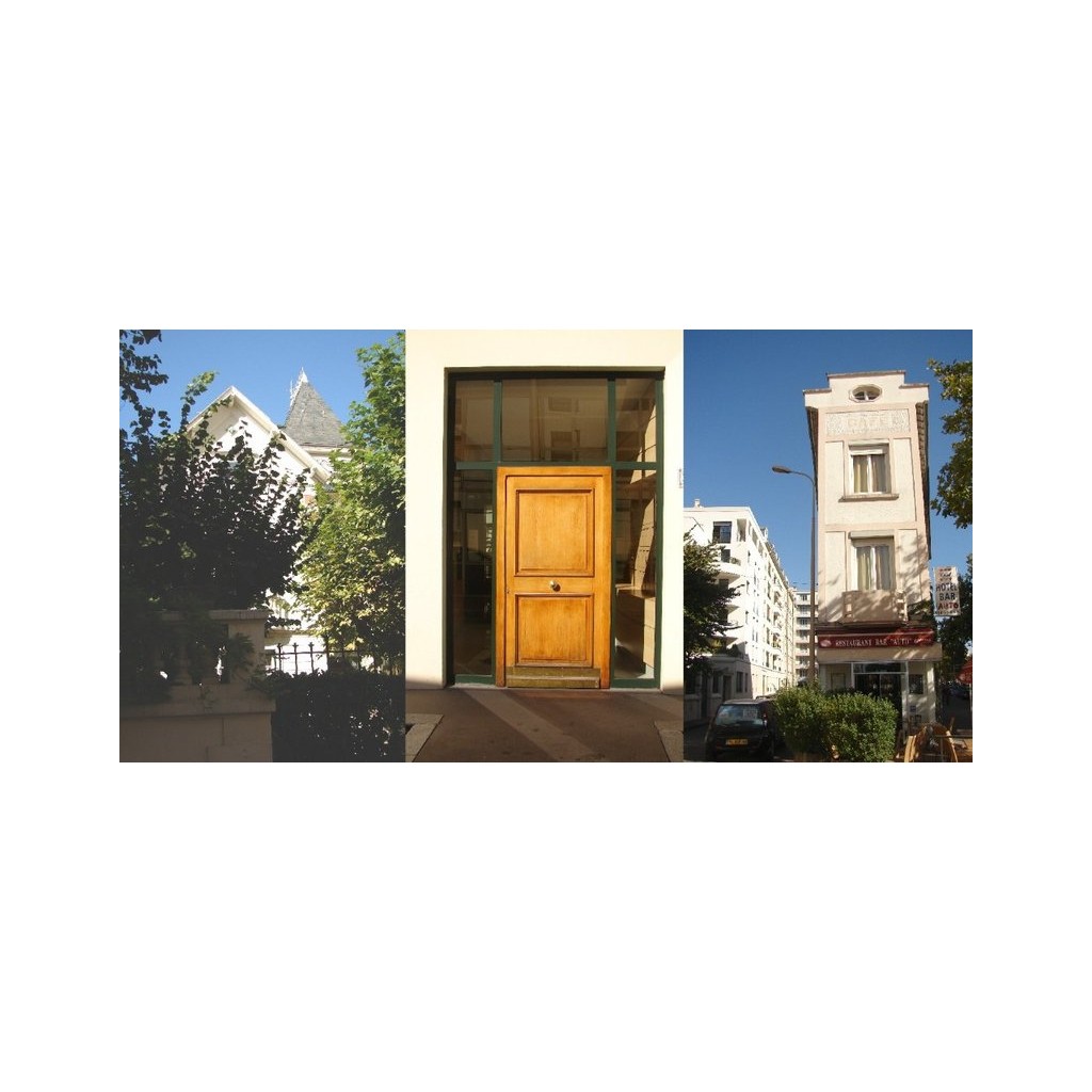 Coté nord, deux maisons individuelles dans leurs jardins, la seconde est jolie avec ses toits pointus. Elles sont prolongées par un alignement de jolis immeubles neufs de cinq étages.